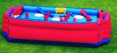 Experience the thrill of Hockey without the ice. It’s exciting, fun and portable. This inflatable game weighs less than 35 lbs. and accommodates 6 players. Each player has an air hose that directs the ball toward the goal. 12'Lx5'Wx3'H/req. 20amps
